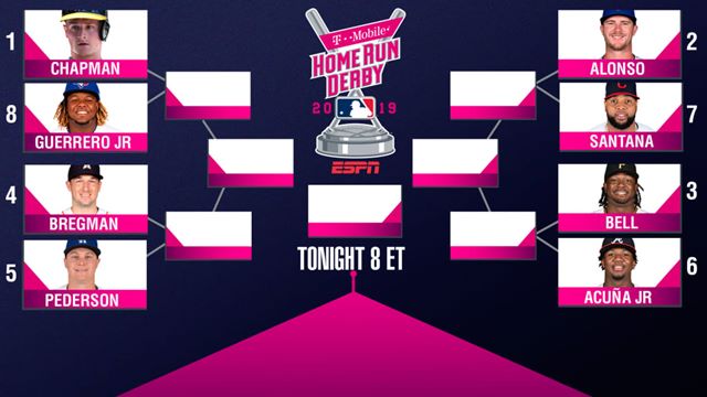 2019메이저리그 홈런더비 출전 명단은 맷 채프먼(오클랜드)-블라디미르 게레로 주니어(토론토), 알렉스 브레그먼(휴스턴)-작 피더슨(LA다저스), 피트 알론소(뉴욕 메츠)-카를로스 산타나(클리블랜드), 조쉬 벨(피츠버그)-로날드 아쿠냐 주니어(애틀란타) 입니다.