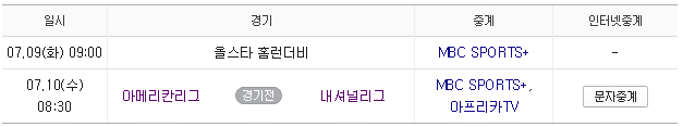 올스타전 본경기 : 2019년 7월 10일 오전 8시 30분