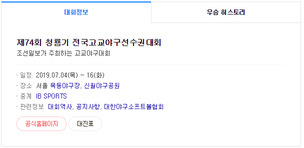 제 74회 청룡기 전국고교야구대회 중계 방송은 IB스포츠와 대한야구소프트볼협회 유튜브 공식 채널, 무료스포츠중계, 야구경기생중계사이트 등 에서 생중계 됩니다.